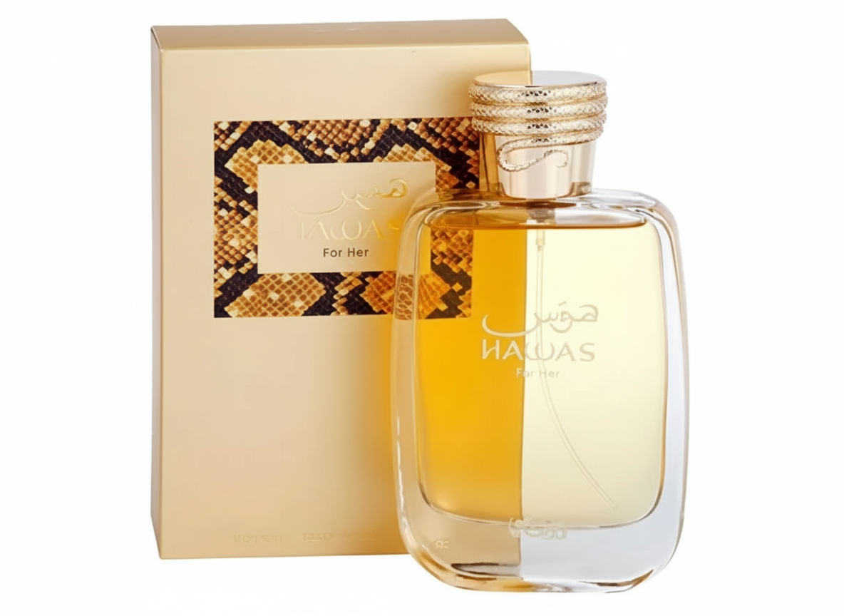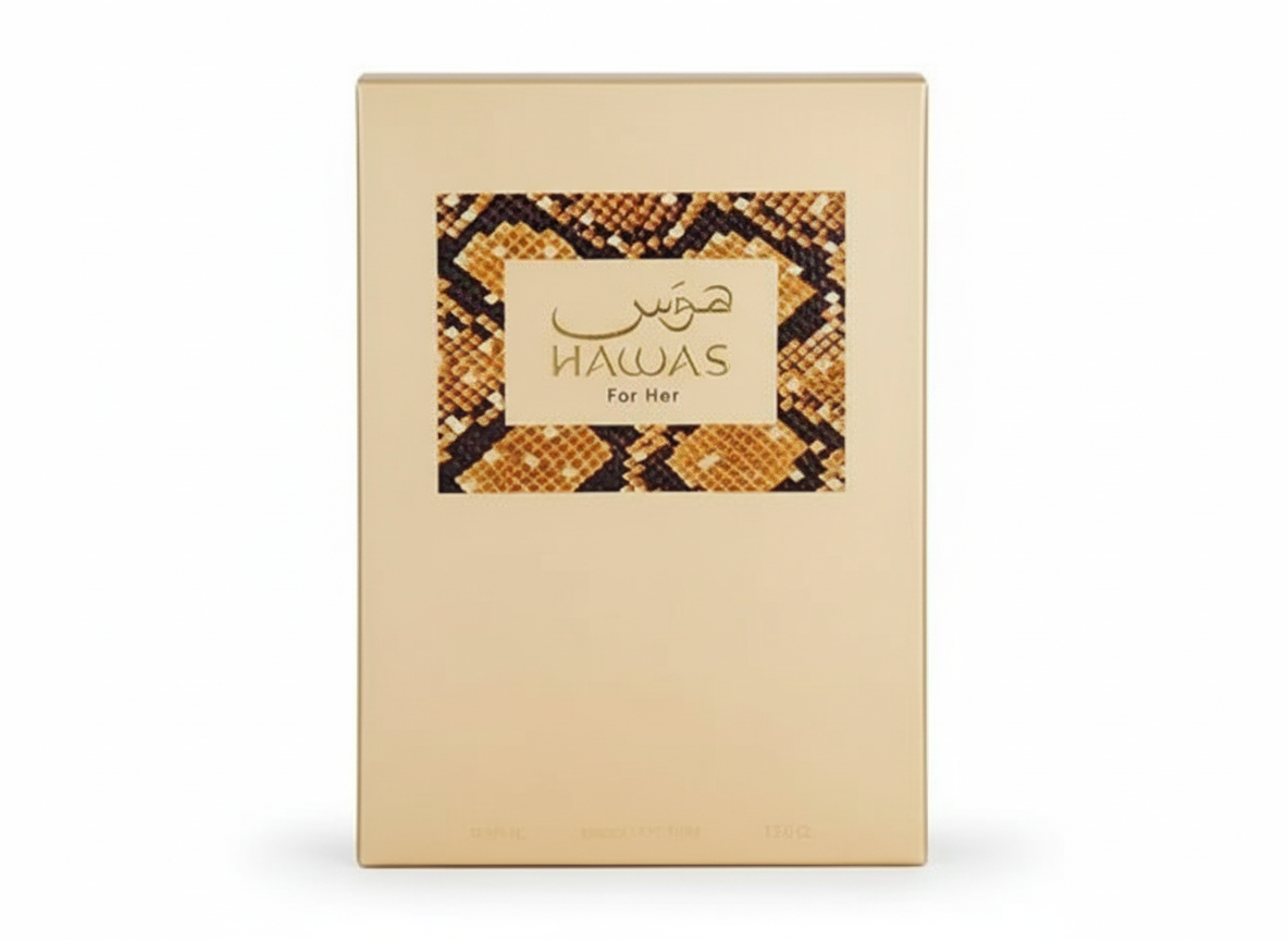 Hawas For Her es una fragancia femenina irresistiblemente adictiva, que inicia con una chispeante mezcla de granada, manzana y pomelo. El corazón de la fragancia revela un bouquet floral de iris y jazmín sambac, que aporta un toque de elegancia y sofisticación. Las notas cítricas añaden frescura y vitalidad, mientras que el praliné introduce una dulzura envolvente. La base de pachulí y vetiver proporciona una profundidad terrosa y sensual, dejando una estela memorable y encantadora.